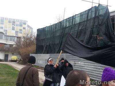 13:09ч. Пред строежа до Делфинариума демонстрантите скандират "Това не е ремонт". За разлика от миналата събота, когато на обекта кипеше работа, днес не се забелязват работници.
