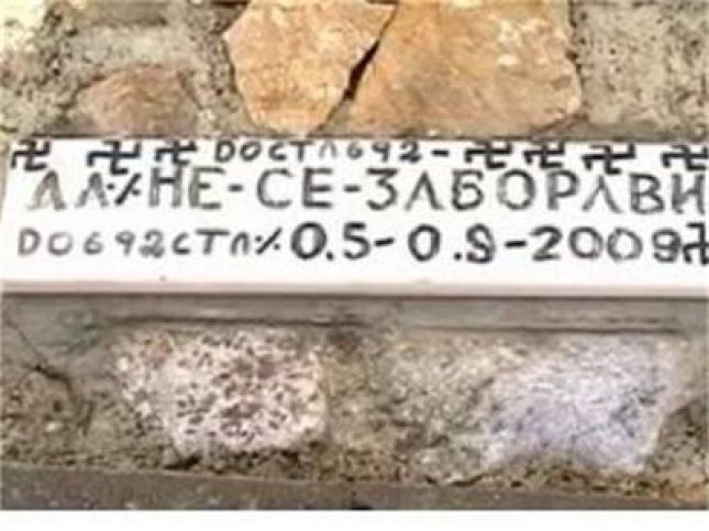 Върху него с черен маркер са изрисувани пречупени нацистки кръстове, изписан е и текст с неясно съдържание. Извършителят е неизвестен.