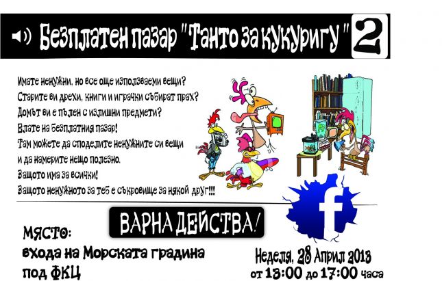 След големия успех на първия свободен пазар във Варна "Танту за кукуригу", организаторите съобщават, че предстои втори такъв. Той е предвиден за 28 април, неделя, от 13:00 до 17:00 часа.