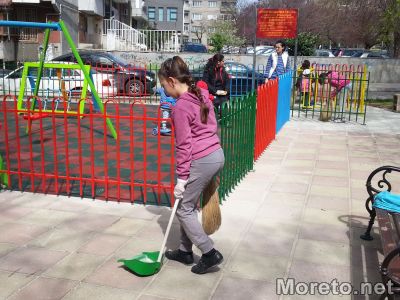В екоакцията взеха участие и деца, които почистиха детска площадка в района на Червения площад.