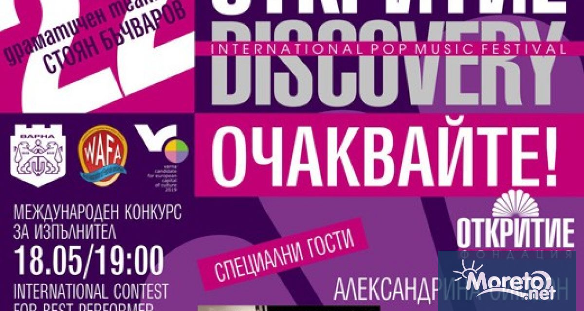 От днес Варна отново е градът, който ще покаже на българската публика най-добрите изгряващи таланти в поп, рок и денс музиката от 5 континента. Тази вечер започва 22-рият международен музикален фестивал „Откритие 2013”, който ще събере на една сцена млади музиканти от цял свят в двата паралелни конкурса за най-добра песен и за изпълнител.