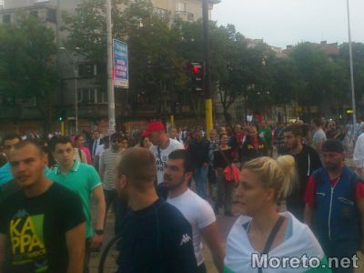 С викове "Мафия", "Оставка", "Долу БСП", "Червени боклуци", "БСП боклуци", "Пеевски свиня", "Долу ДПС", протестът премина в шествие, което потегли в посока "Червения площад".