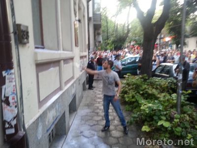 Пред централата на БСП, протестиращите скандират: "Червени боклуци!"