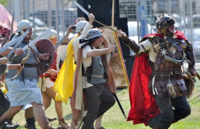 Звън на мечове и тропот на коне огласиха Аспаруховия парк, който се превърна в сцена на празника. Сдружения за възстановки и патриотични комитети от Варна, Шумен, Добрич, Велико Търново, Асеновград пресъздадоха пред малки и големи паметни епизоди от българската история – от времето на Аспарух, през Първото и Второто българско царство и Освободителното движение до Руско-турската освободителна война и последвалата я Балканска война. Чрез епизоди от родната история бе съживен дори споменът за Първата и Втората световна война.