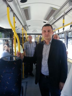 Кандидатът за кмет на Варна Иван Портних се включи в кратката разходка с новия демонстрационен автобус, заедно с представители на борса на директорите на полската фирма.