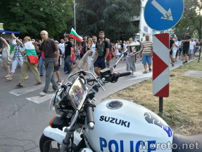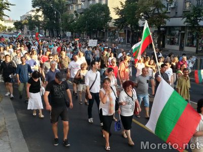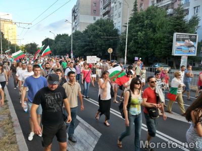 19:33 Със скандирания - долу ДПС, оставка, червени боклуци, протестиращите поеха по ул. Бенковски в посока Нептун