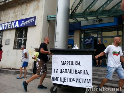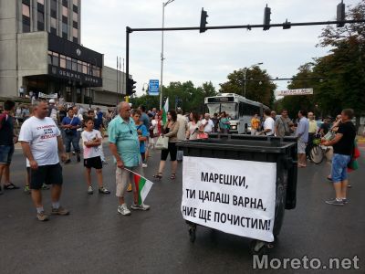 18:49 Около 150 човека блокираха кръстовището пред общината. С контейнер ще събират плакатите на Марешки.