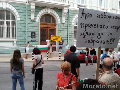 20:07 Кратък митинг се проведе пред БСП. Около 70-80 протестиращи скандираха "Сер-гей"