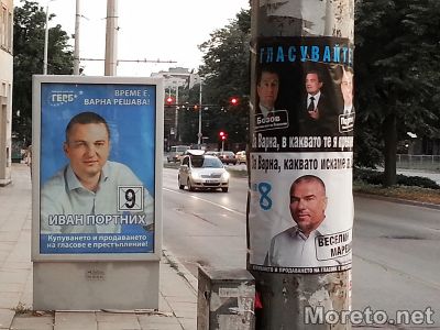 Истинска плакатна война се заформи последните дни между кандидатите за кметския пост във Варна. Тази нощ обаче нещата взеха връх. Много голяма част от лайтбордовете с лика на Иван Портних бяха облепени с плакати на Веселин Марешки.