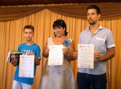 Представителите на Явор Стаменов, Любомира Петева и Теа Денолюбова, които получиха наградите вместо тях.