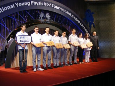 Текст: От 23 до 30 юли 2013г. в Тайпе, Тайван, се проведе за 26 път Международният турнир на младите физици.В него взеха участие 26 отбора от Европа, Азия и Африка. Гост на турнира бе нобеловият лауреат по физика проф. Ошеров.В състава на националния отбор на България бяха включени трима ученици от МГ – Искрен Ванков, Калоян Дърмонев и Николай Николов. Състезанието е отборно, капитан на отбора бе Искрен Ванков.Това е едно от най-трудните и нестандартни състезания по физика. Задачите изискват научен подход, свързан със сериозен физичен експеримент, анализ на резултатите, оценка на параметрите, които влияят върху физичното явление. В „битките” между отборите са важни уменията за презентиране, воденето на научен деспут, изграждането на стратегия и работата в екип. Нашите ученици имаха пет „битки” с десет отбора, между които бяха и най-добрите отбори в света - от Сингапур и от Швейцария.Те се бориха истински и достойно представиха България, МГ и гр.Варна, като спечелиха бронзови отличия – първите от 10 години насам. Калоян Дърмонев е и с бронзов медал от Международната олимпиада по физика, проведена в Копенхаген, Дания.Той е единственият състезател от страната, който участва и в двата национални отбора по физика. Преподавател на учениците в МГ е Петя Костадинова. Ръководители на отбора са гл.ас.д-р Гинка Екснер от ПУ “Паисий Хилендарски“, Пловдив и Аслихан Илиян- бивш участник в турнира.
