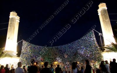 Огледалото има размери 14,4 на 4,8 метра. Цялата инсталация тежи около 100 кг. Преди да бъде окачена на колоните, тя е тествана за издръжливост.