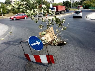 Уникален пътен знак се появи на кръговото движение на ул. „Девня“ във Варна. Пътната сигнализация втрещява шофьорите, които минават от там. По средата на шосето има огромна дупка, тъй като е откраднат капака на уличната шахта.