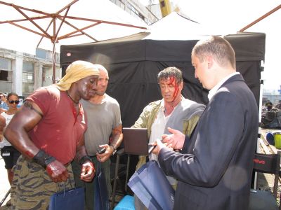 Силвестър Сталоун и останалите суперзвезди от филма „Непобедимите 3” получиха реплики на най-старото злато в света от кмета на Варна Иван Портних, който гостува на снимачната площадка на суперпродукцията. След като преди няколко дни той прие продуцента и собственик на „Ню имидж” Ави Лернер и получи лична покана да гостува на снимките на продукцията, вчера Портних успя да се потопи в бойната атмосфера на снимачната площадка. Лернер показа на госта си снимачната площадка в пристанището и разказа подробности по работата на филма.