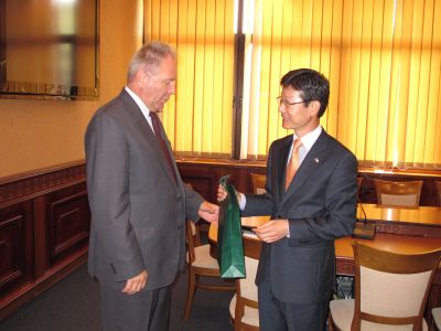 Новият посланик на Южна Корея у нас Н. Пр. Шен Менгхо днес е на първото си посещение във Варна. В общината той се срещна със заместник-кмета Пейчо Пейчев и в разговор с него се запозна с икономическата ситуация в морската столица. Според дипломата южнокорейските предприемачи проявяват сериозен инвеститорски интерес към Варна. Н. Пр. Шен Менгхо посочи сферите за регионално сътрудничество, които са от взаимен интерес. Това са корабостроенето, автомобилостроенето, развитието на информационните технологии, както и обработката на отпадни води. Дипломатът прояви интерес към проекта за интегриран градски транспорт и подчерта сериозните успехи на Южна Корея в разработването на интелигентни транспортни системи. Той се запозна с идеите за разширяване на капацитета на варненското пристанище, както и с възможностите, които предлагат индустриалните зони във Варна. Заместник-кметът обсъди с госта големите проекти, по които ще работи община Варна през следващите години. Н. Пр. Шен Менгхо одобри предложението на Пейчо Пейчев за задълбочаване на културните отношения и предложи Варна да създаде връзки с пристанищен град в Южна Корея.
