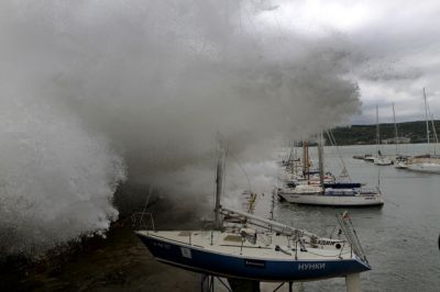 Огромни вълни заливат вълнолома на Морската гара във Варна, а Пристанището остава затворено втори ден. Причината е силният североизточен вятър с пориви до 17 метра в секунда. Вълнението на морето е 4-5 бала.