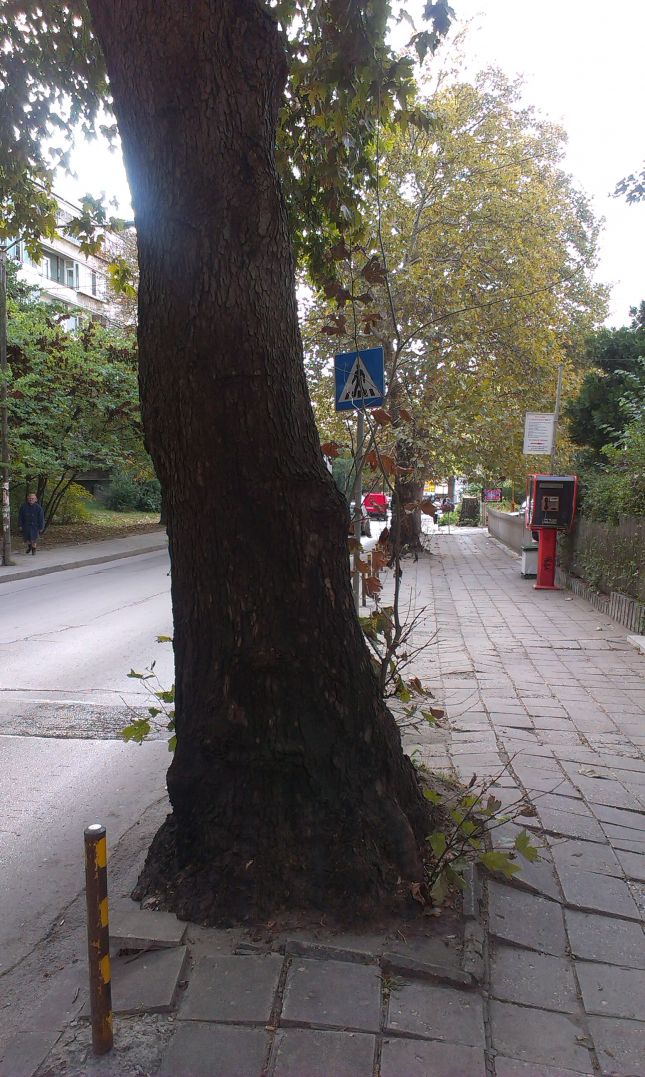 "Маркировката на пешеходната пътека е изтрита, легналите полицаи са премахнати, а знака посока спирка "Акациите" е поставен зад дървото и е невидим за водачите на МПС. Пешеходната пътека се ползва главно от деца които учат или живеят в кв.Чайка и тренират в залата. Улицата е права и е предпоставка за развиване на високи скорости. Трябва ли да пострада дете или пешеходец за да се вземат мерки?", пита нашият читател.