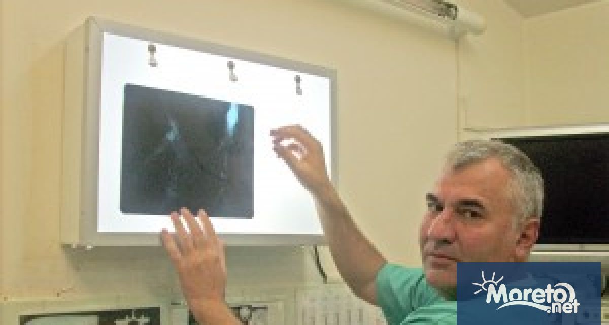Доктор Делчев вади рентгенови снимки на най-тежките случаи. Той ни показва как се разпръскват оловните сачми в малките телца – това са десетки ярки топчета, които светят повече от самата кост върху светещата стена на апарата.