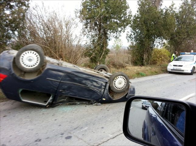 Фолксваген Голф с варненска регистрация самокатастрофира на пътя край село Тополи. Заради несъобразена скорост шофьорът е изгубил контрол над возилото, вследствие на което се е преобърнал по таван.