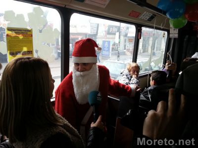 Дядо Коледа пристигна със стар автобус във Варна, закъсня с 13 минути