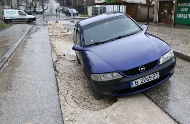 Шофьор падна с колата си в дупка във Варна и я заряза