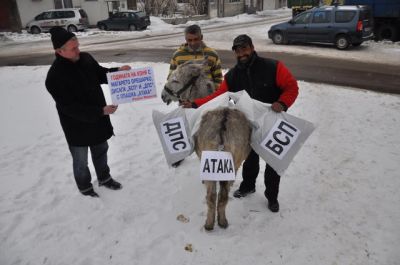 Поради липса на кон за посрещането Марков използва магарето Орешарко, което носи от двете си страни дисагите: "БСП" и "ДПС", а отзад на опашката - "Атака". Акцията на Марков беше под надслов "По-малко магарета, повече атове!"