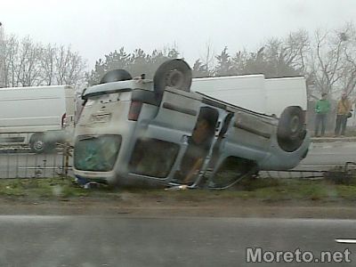 Лек автомобил „Ситроен Берлинго” катастрофира на магистрала “Хемус”, на входа за Варна. Произшествието е станало около 10,25 часа. Колата се е забила в предпазната ограда на разделителния пояс и се е обърнала по таван. Освен шофьора, в нея са пътували още двама души, съобщиха от полицията. Никой от тях не е пострадал.