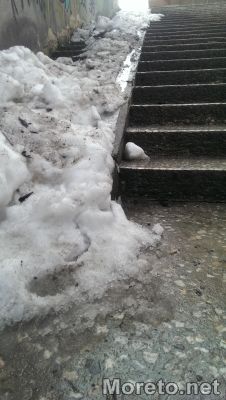 Наред с проблемите около снегопочистването и сметоизвозването в истинските зимни дни във Варна, сега, когато снегът започна да се топи все още има участъци, които възпрепятстват свободното движение на жителите по улиците и най-вече на майките с колички. Читателка на Moreto.net изпрати снимки на непочистени стълби във варненските подлези. Публикуваме писмото към тях без корекции: