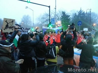 18:31 ч. Протестиращите блокираха прибиращия се след мач автобус на ЦСКА