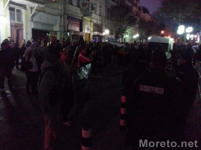 18:58 ч. Протестиращите опитаха да влезнат в сградата, но портите са залостени. Минути след това дойде полиция.