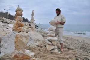 С балансирането на облите и ръбести блокове се е заел варненец, който признава, че прави това единствено за забавление. С артистичното хоби той се запознал, след като видял клипове в интернет. Решил да пробва и той и, естествено, избрал за това плажа край буните.