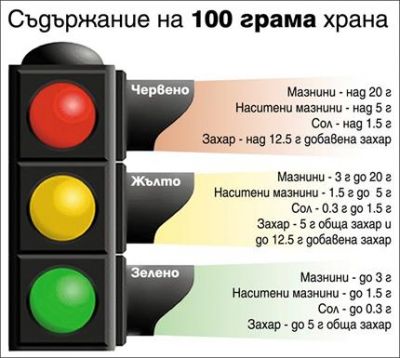 Зелена светлина за здравословни храни получават продукти, в които захарта е до 5 грама на 100 г продукт, мазнините до 3 г, а наситените мазнини - до 1,5 г. Солта не бива да надвишава 0,3 грама. Стоки с мазнини над 20 грама в 100 грама продукт пък ще бъдат оцветявани в червено.