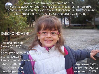 Всеки, който има желание да помогне на Ани, може да направи това като изпрати SMS с текст DMS ANITO на номер 17 777 или чрез дарителска сметка: