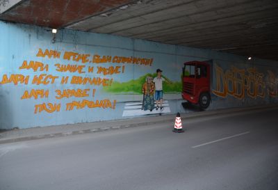 Стената на автоподлез във Варна се превърна в арт послание за добротворчество