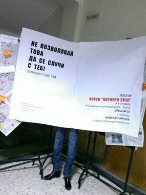 Кампанията по популяризиране на форума започна с интерактивен метод с предизвикателен призив към студентите „Не позволявай това да се случи с теб! Покажи себе си!”