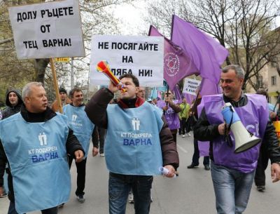 19:00ч. 10 Април 2014 #4  gali "КТ Подкрепа" и "Национална федерация на енергетиците в България" казионни синдикати.Протестиращи които имат право да протестират за да си запазят работата, извозени организирано с транспорт осигурен от "ТЕЦ Варна"(ЧЕЗ).Протеста е манипукиран от ЧЕЗ