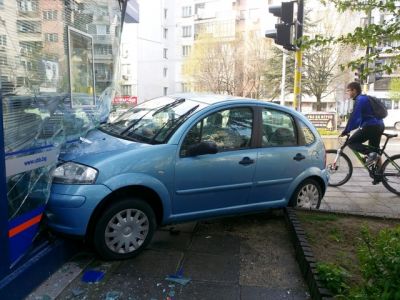 Автомобил "Ситроен C3" буквално се заби в банка във Варна. Инцидентът стана тази сутрин (неделя) на кръстовището на бул."Сливница" и ул."Пирин".