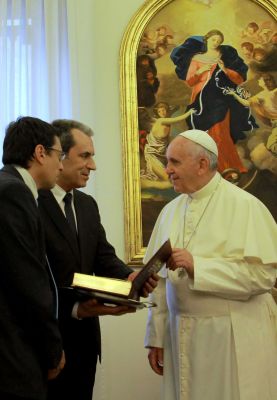 Посещението при папата винаги е предизвикателство. Особено съм впечатлен от неговата личност – изключително ерудиран човек. Това заяви министър-председателят Пламен Орешарски след аудиенцията при Негово Светейшество папа Франциск във Ватикана. „Използвах повода да благодаря за традицията вече всяка година българска делегация на високо равнище да посещава папата и да поднасяме нашата признателност за ролята на Светия престол за утвърждаване на българската азбука, превърнала се във вековете в славянска“, изтъкна премиерът. Той подчерта благодарността си за храма, който стоеше като открит въпрос и за известно време нямаше къде да се служи на български език в Рим.