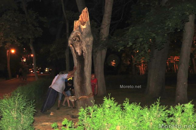 До около 22 часа тази вечер екип на "Гражданска защита" разчистваше алеята и дървото вече е премахнато.