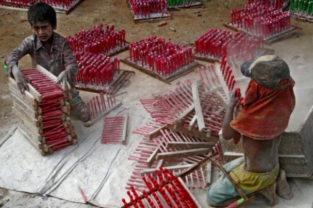 Да не говорим за опасните за живота им условия - местоработата сама по себе си, опасни изпарения и вещества. Труд, който деформира телата и душите им. Те работят без предпазни средства, маски и ръкавици, голи, гладни... 6 годишни деца, производители на безброй изделия, които познаваме в ежедневието си - балони, моливи, килими, тухли, чиито произход не следим, са резултат от робския детски труд.