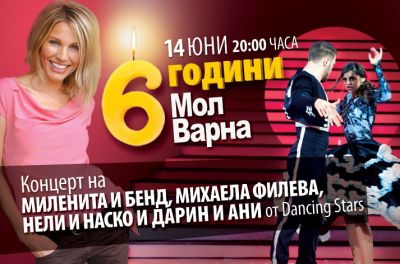 Мол Варна ще отпразнува 6-ия си рожден ден утре (14 юни) с безплатен концерт на „нежната бухалка“ на независимата българска музика Миленита и някои от най-ярките звезди на култовото телевизионно шоу „Денсинг старс“. Много емоции очакват публиката с изпълненията на родената в Хавана Миленита и момчетата от новата й лайв група Funky Miracle, научи Moreto.net. За ЧРД на Мол Варна бандата ще забие хитовете на синеоката чаровница – от "Черни котараци" до Bang-Bang - парчето, нашумяло покрай превъплъщението на Миленита в Ади, барманката на мафията от сериала "Под прикритие". Пред микрофона глас ще извиси и Михаела Филева - любимката на тийнейджърите от музикалната сцена, която успя да смае цяла България с танцувалните си умения под прожекторите на „Денсинг старс“. Танцьорката с най-дълги крака в шоуто ще разкърши снага пред варненци редом с конкурентите си от звездния формат - тв водещата Нели Атанасова и хореографа Наско Месечков, актьора Дарин Ангелов и неговата партньорка Ани.