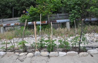 Последното нещо, което си представя човек, че ще види на плажа, са лехички с краставици и домати. Колкото и невероятно да звучи обаче, градинката е факт. Зарзаватът е засят близо до Топлата вода във Варна и се охранява почти денонощно от собствениците си - картоиграчи, прекарващи голяма част от деня си на плажа. "Ранчото" е оградено с камъни, а пясъкът в него е заменен с пръст.