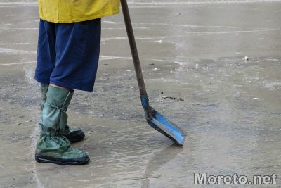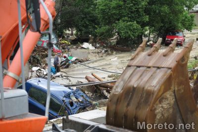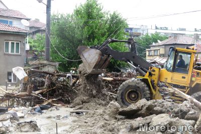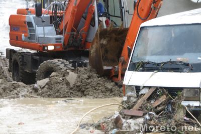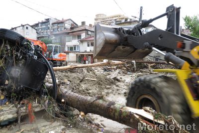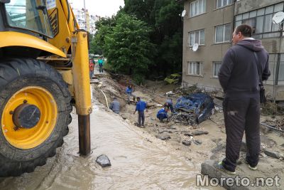 Репортер на Moreto.net e на място на ул."Горна студена", която до момента бе недостъпна заради струпаната кална маса, останки от постройки и други. Разчистването се извършва от един багер и една фадрома.