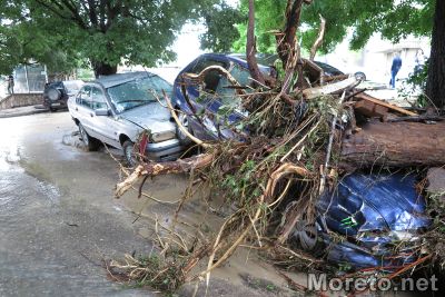 12:25 ч Натоварен е трафика в центъра на Аспарухово, съобщи репортер на Moreto.net . Видимо най-много поражения има на ул. Моряшка и ул. Горна Студена, там асфалт практически няма, събран е на плочи от водата, колите са една върху друга, клони и всякакви предмети се виждат на мястото.