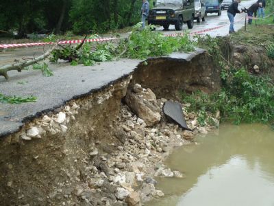 Тежко е положението и на входа на с. Генерал Кантарджиево, където е компрометиран мостът. Там е наложено и ограничение в движението на тежкотоварни автомобили.