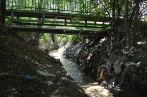 Освен Караджа дере, което минава по ул. „Подвис“ и се влива в Шокъровия канал, в ужасно състояние е и Франга дере, което тече през Цветния квартал. И тук коритата са обрасли със сериозна растителност, и тук наносите от тиня, найлон, гуми, пластмаса и парцали са оставили път на съвсем тънка струя вода. Стесняването на деретата определено е следствие от пороя на 19 юни, както и от предишните валежи, но не само. Просто трупаните с години тук и там боклуци бяха разнесени. Смесени с кал, те стават като бетон. А на някои места си личи, че в дерето е изливан и истински бетон, от бъркачка. Едва ли някой го е направил, за да подсили дерето или мостчетата, които са прехвърлени отгоре му. По-скоро е решил да изхвърли излишния материал по най-простия начин – в канала.