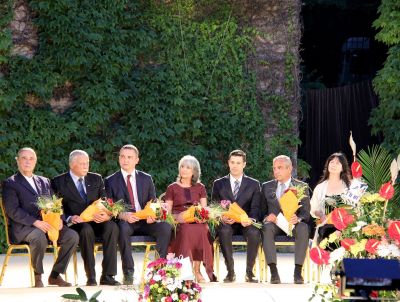 На легендарната сцена на Летния театър малки балерини посрещнаха с цветя членовете на международното жури, водени от иконата на танца Владимир Василиев, който сподели от трибуната, че в момента има много балетни конкурси по света, но Варненският остава най-значимият.