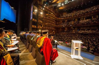 Традиционно за британските церемонии по награждаване на завършващите, всеки един студент бива повикан на сцената за връчване на дипломата. Преди излизането си пред публиката студентите поздравяват ректора с поклон, след което биват поздравявани с ръкостискане от него.