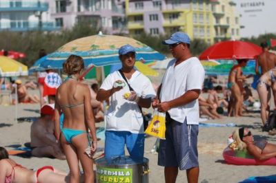 Скъпотията по морето продължава да мори летовниците, като в надпреварата с търговци, кръчмари и хотелиери се включиха и разносните търговци по плажовете, сто процента от които са незаконни. Само от банички и гевреци те си докарват печалби от порядъка на 200-300%.