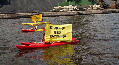 Активисти на “Грийнпийс” опънаха банери „Бъдеще без въглища” във водите пред ТЕЦ „Варна”